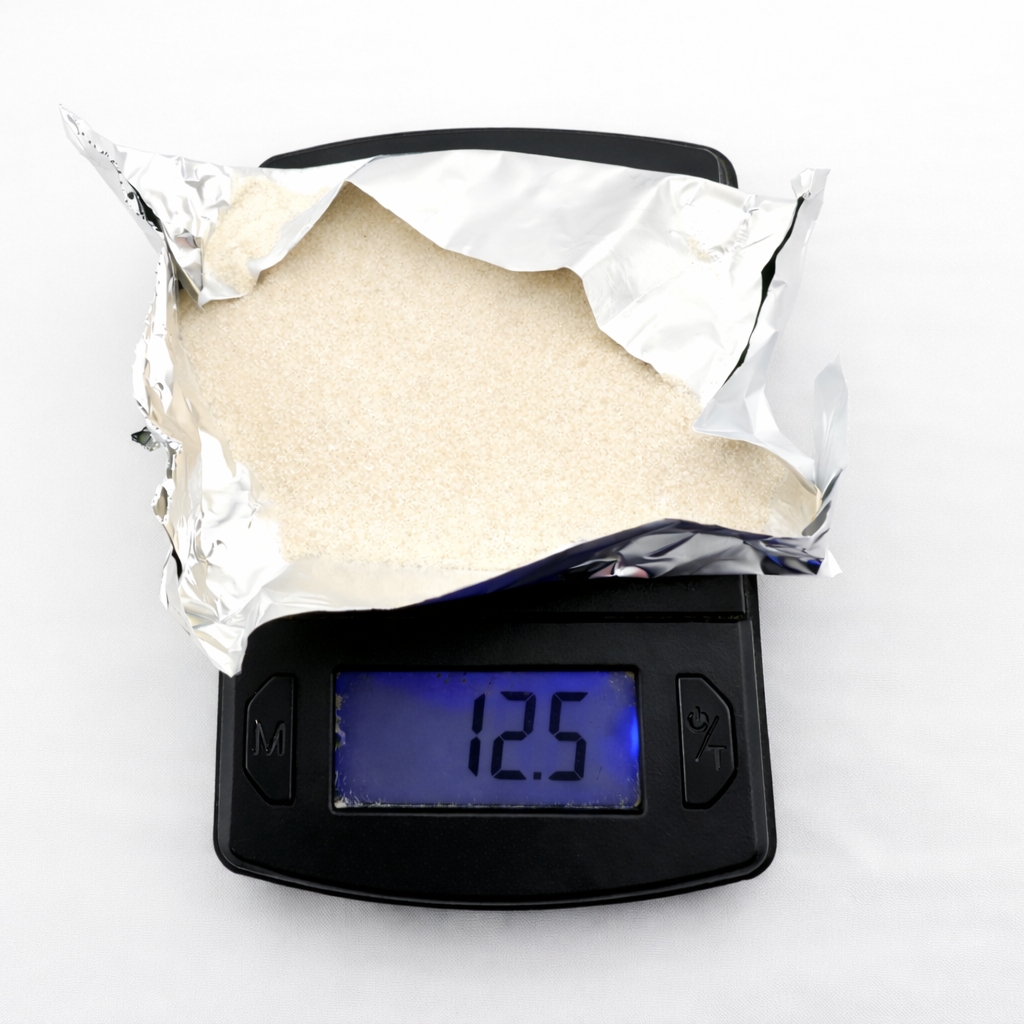 -Weigh out 12.5 grams of agar per 250 mL of water used